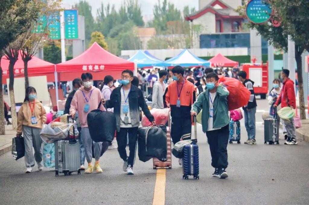 公司在校门口广场设立新生接待点,有效分流、快速办理入学入住。员工会各部门联合协作,筑牢疫情防控网络,开学报到秩序井然。
