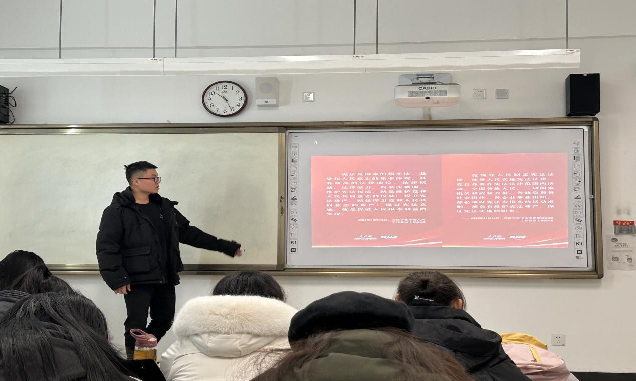 紧接着,各班班主任向同学们介绍了如何在日常生活中运用宪法来维护自己的权益。本次班会讲解内容丰富、深入浅出,让同学们更好地理解了宪法的内涵和价值。演示环节则通过具体的实例,让同学们更加直观地了解了宪法的具体应用。讨论环节则鼓励同学们积极发表自己的看法,增强了同学们对宪法的理解和认识。此外,各班班主任还强调了宪法在维护国家稳定、保障人民权益方面的重要作用,让同学们认识到宪法不仅是国家的根本大法,更是每个人应该遵守的法律准则。