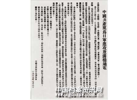 卢沟桥的炮声成了中华民族抗战总动员的号角,面对亡国灭种危机,7月8日,中共中央向全国发表《为日军进攻卢沟桥通电》,呼吁“全中国同胞、政府与军队,团结起来,建筑成民族统一战线的坚固长城,抵抗日寇的侵略!国共两党亲密合作抵抗日寇的新进攻!”