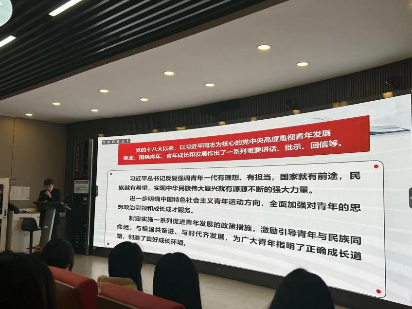 霍霞老师以中华民族从站起来、富起来到强起来的伟大飞跃为主线,向同学们介绍了党史上的青年英杰,阐明了新时代中国共产党的青年观。霍老师强调:“青年兴则国家兴,青年强则国家强。青年一代有理想、有本领、有担当,国家就有前途,民族就有希望。” 中国特色社会主义步入新时代,我们迎来了从站起来、富起来到强起来的伟大飞跃,我们比历史上任何时期都更接近中华民族伟大复兴的实现,但“越是美好的未来,越需要我们付出艰辛努力”。中华民族的伟大复兴,绝不是轻轻松松、敲锣打鼓就能实现的,新时代中国特色社会主义面临前所未有的机遇,也面临前所未有的挑战,因此更需要青年一代不断加强专业知识的积累、实践技能的锤炼、综合素质的提升。