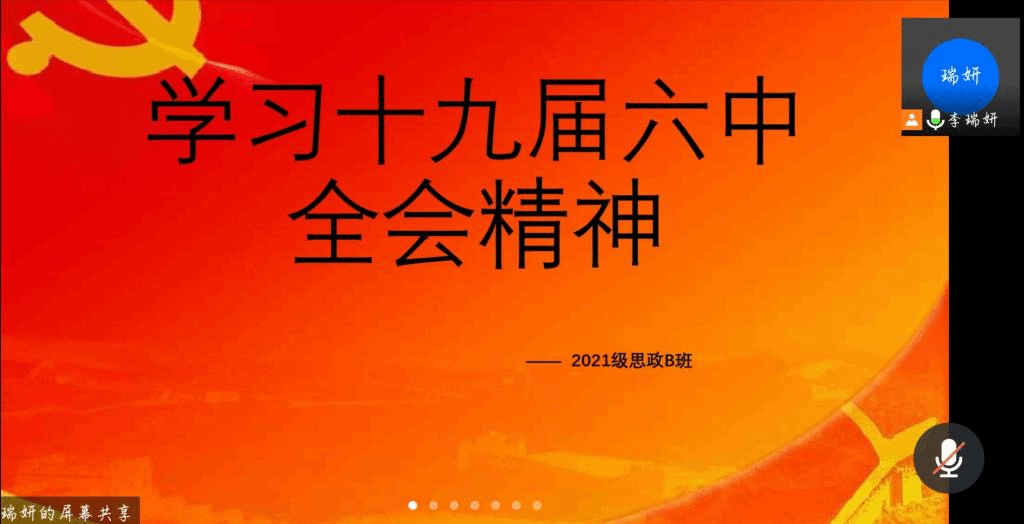 本次团日活动各班采取了线上PPT展示、同学讲解、观看视频等方式,不仅使同学们了解了党的十九届六中全会精神的主要内容,还让同学们深刻认识到党的十九届六中全会精神的重要意义。在党的十九届六中全会上确立了习近平新时代中国特色社会主义思想的指导地位,反映了全党全军全国各族人民共同心愿,对新时代党和国家事业发展、对推进中华民族伟大复兴历史进程具有决定性意义。