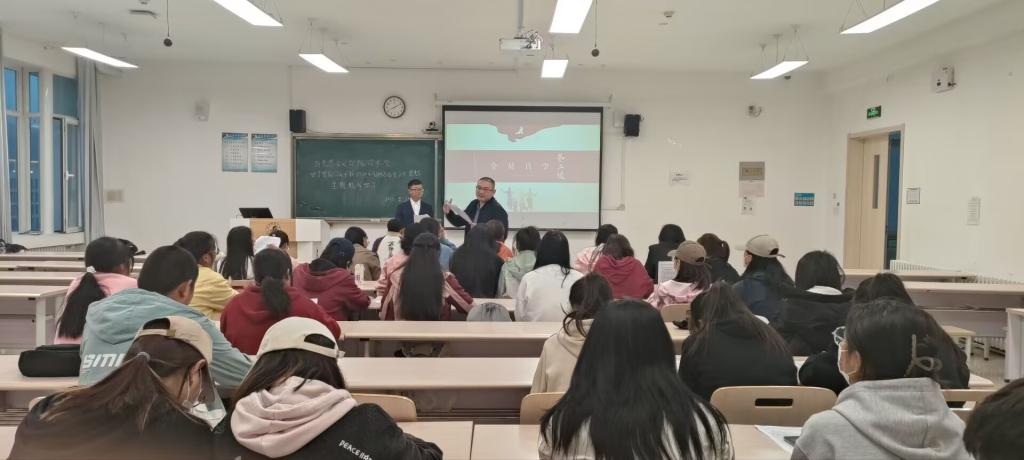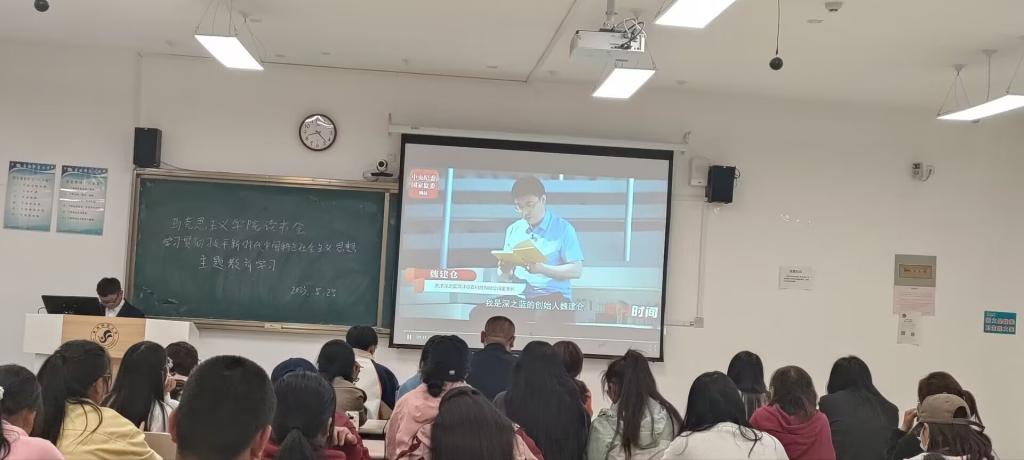在领学环节,张冉同学就党和国家开展本次主题教育的重大意义和目标要求,作了“学思想,践初心”的主题演讲,向同学们介绍了“开展党内集中教育是我们党加强自身建设的重要经验”、“青海省扎实推进主题教育见行见效”以及“以学铸魂,坚定理想信念”三个方面的内容,告诉同学们要牢牢把握主题教育中提到的“学思想、强党性、重实践、建新功”的总要求和坚持“学思用贯通,知信行统一”的根本任务,深入学习习近平新时代中国特色社会主义思想的科学内涵,并将其内化于心,外化于行。