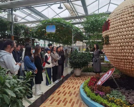 实践活动分两个环节,在第一环节,农业示范园区管委会副主任吴朝平向师生介绍了现代农业示范园区在发展互助县特色农业方面所作的探索,以及园区为员工研学提供服务情况。在第二环节,员工们在园区讲解员的带领下分两组进行参观学习。在互助县国家现代农业数字化展示中心、现代农业展示中心、草莓新品种试验示范展示棚师生们感受了青海河湟农耕文化和七彩农业,学习了互助县各乡镇特色产业发展情况,园区在推进农业供给侧结构性改革,加快农业现代化发展,激发农业农村经济发展新动能,推进乡村振兴所作出的贡献和示范作用。